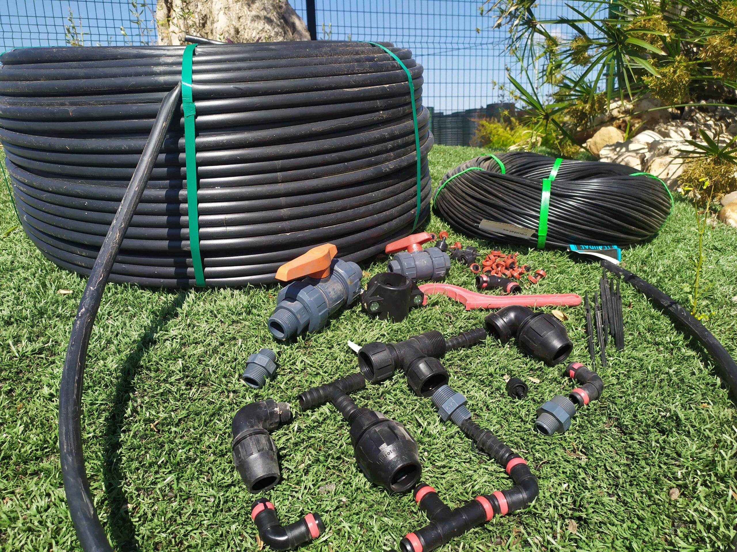 Para instalar un sistema de riego eficiente en tu jardín, necesitarás los siguientes elementos: