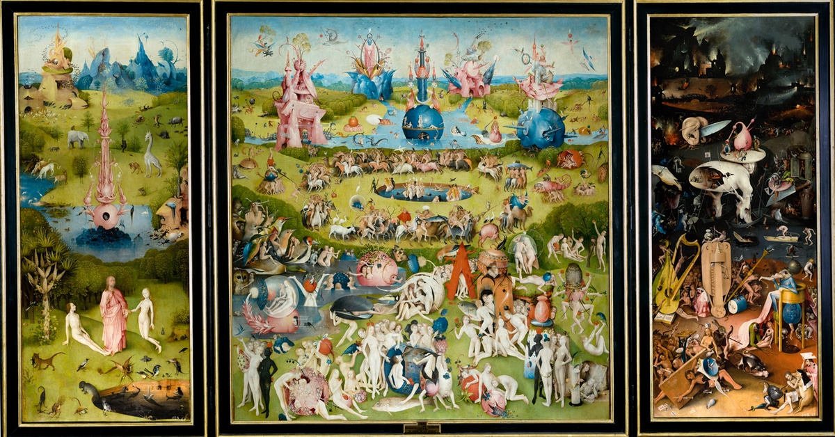 Sin embargo, en los paneles laterales, Bosch muestra una visión más distópica y caótica de la naturaleza. En el panel izquierdo, se representa el Edén, donde se pueden observar figuras humanas interactuando con animales y plantas de manera pacífica. Por otro lado, en el panel derecho, se muestra el infierno, donde se representan escenas grotescas y monstruosas, con seres deformes y criaturas extrañas. Estos paneles laterales transmiten un mensaje sobre la dualidad de la naturaleza, mostrando que la belleza y el orden pueden transformarse en caos y destrucción si no se cuida adecuadamente.
