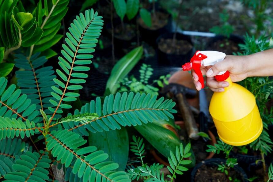 6. Rocía las plantas afectadas por plagas, asegurándote de cubrir todas las áreas, incluyendo el envés de las hojas.